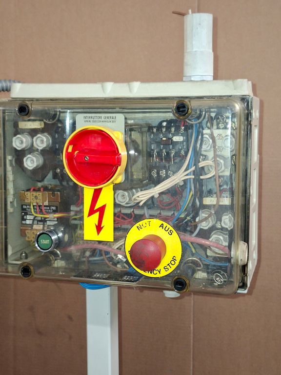 Electric panel with emergency button.