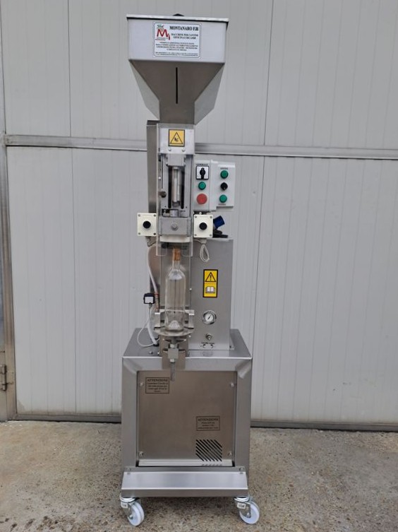 Machine normally suitable for natural corks and synthetic caps of various types having Ø 22/26mm., height up to 50mm; on request caps diameter 28/30mm.