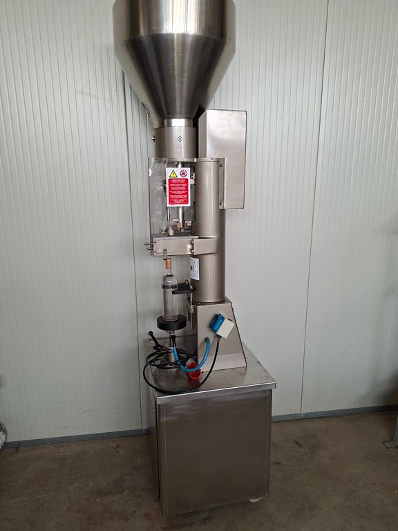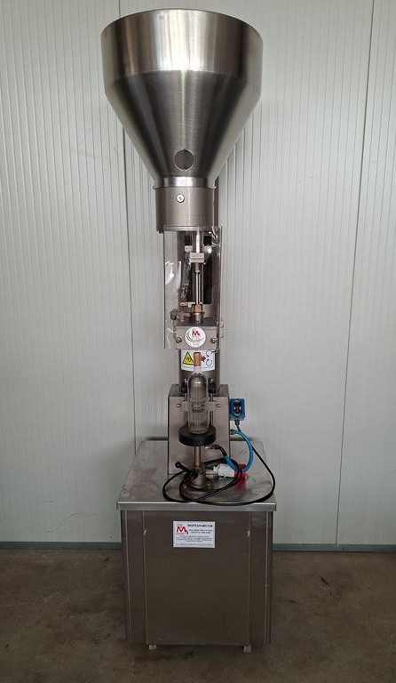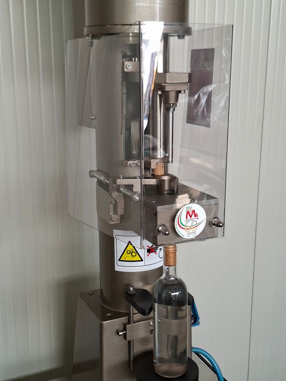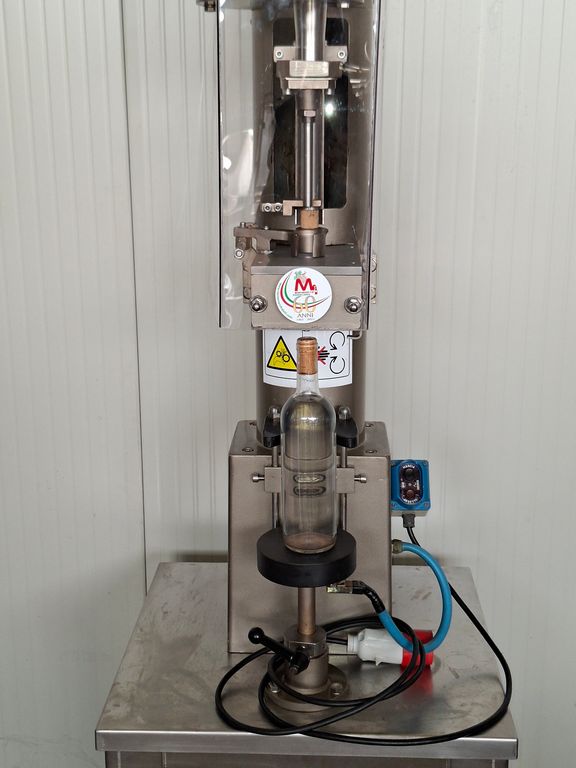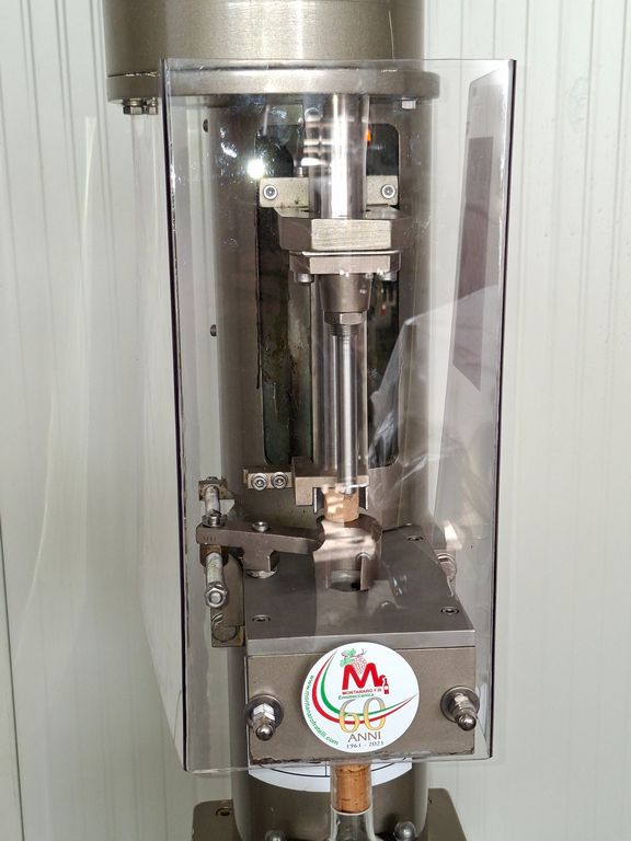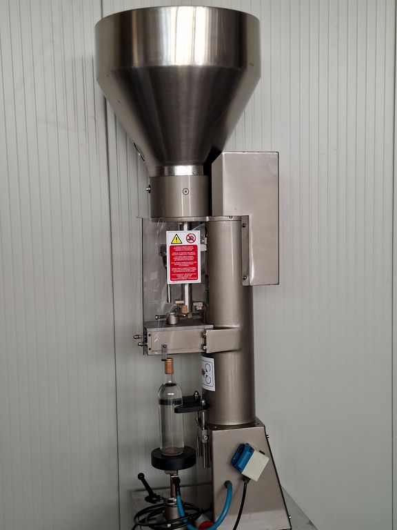 Semiautomatic corking machine Montanaro F.lli, for natural cork, with a large feed hopper for cork feeding.