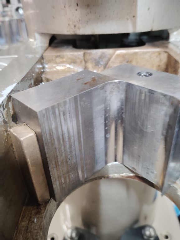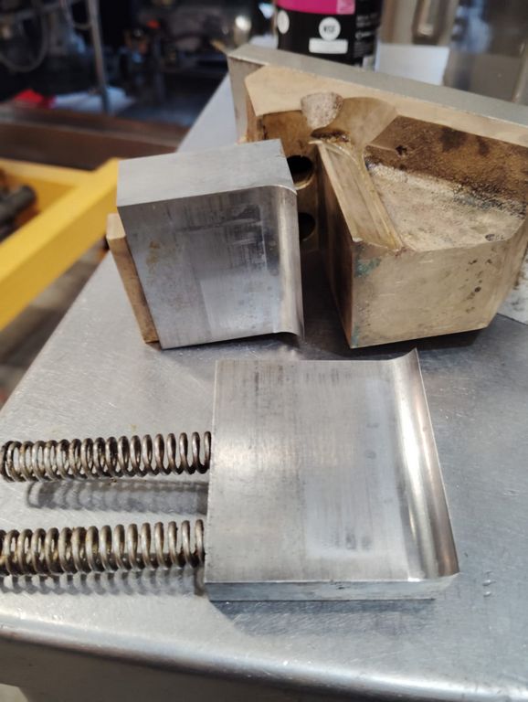 Steel jaw assembly with dovetail bronze guides.