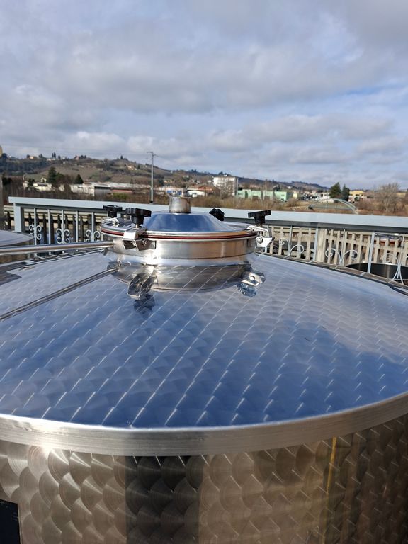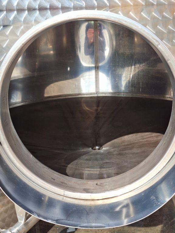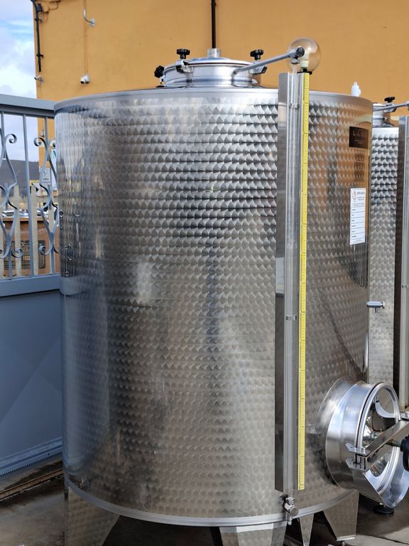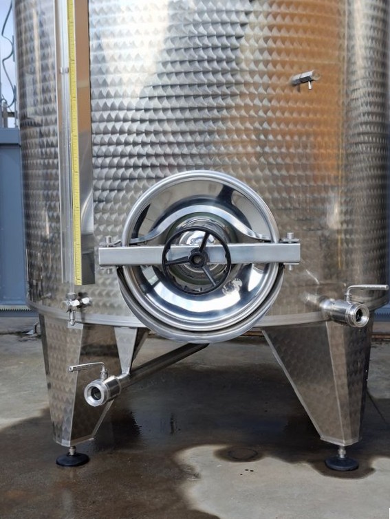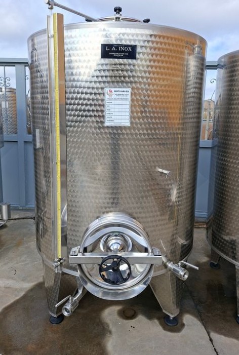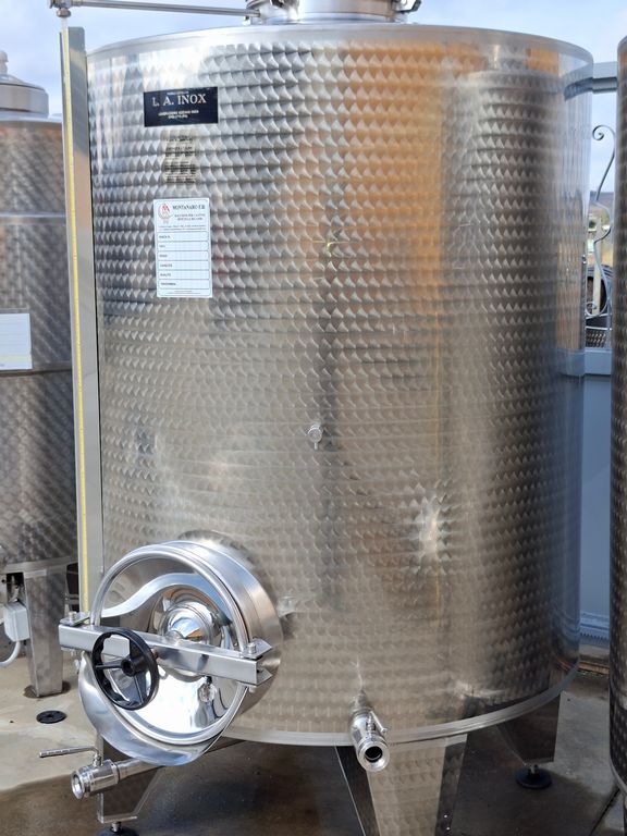 Stainless steel tank, brand L.A. Inox, conical-bottom storage/vinification model, capacity approx. 2000 liters.