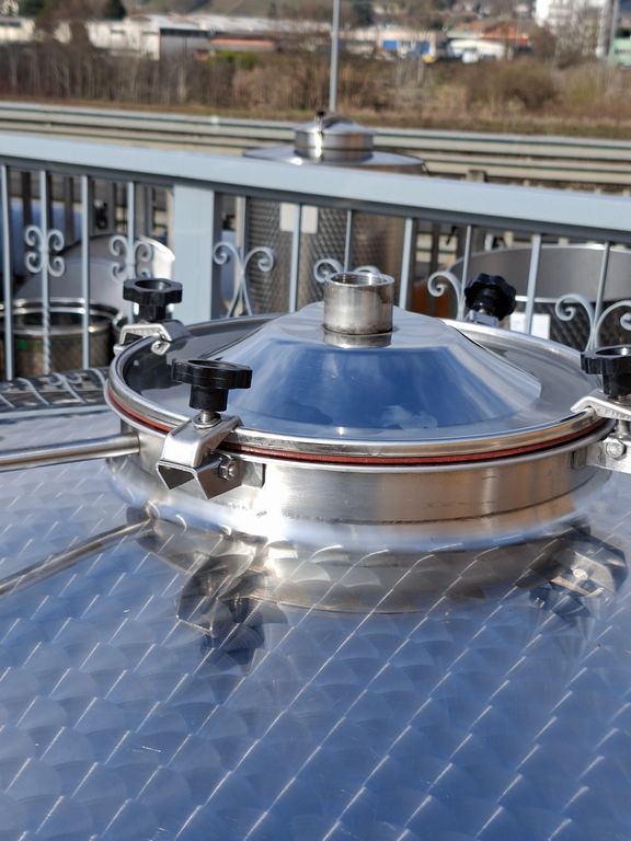 Upper manhole Ø 400 mm with reinforced clamps, predisposition for nitrogen filling.