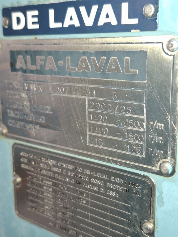 Centrifuga Alfa Laval modello VNPX 207, con quadro elettrico Alfa Laval Combimatic.