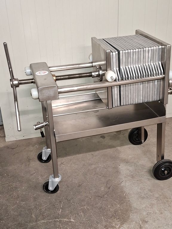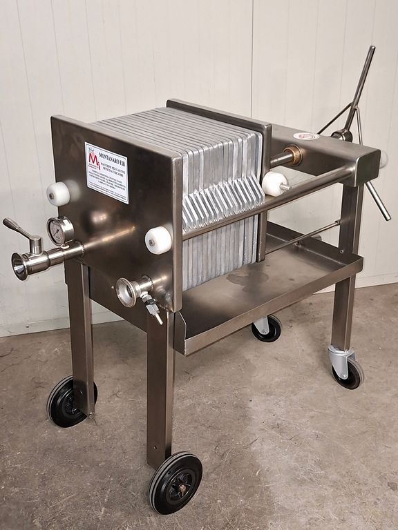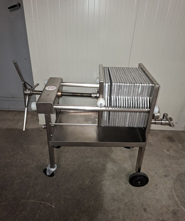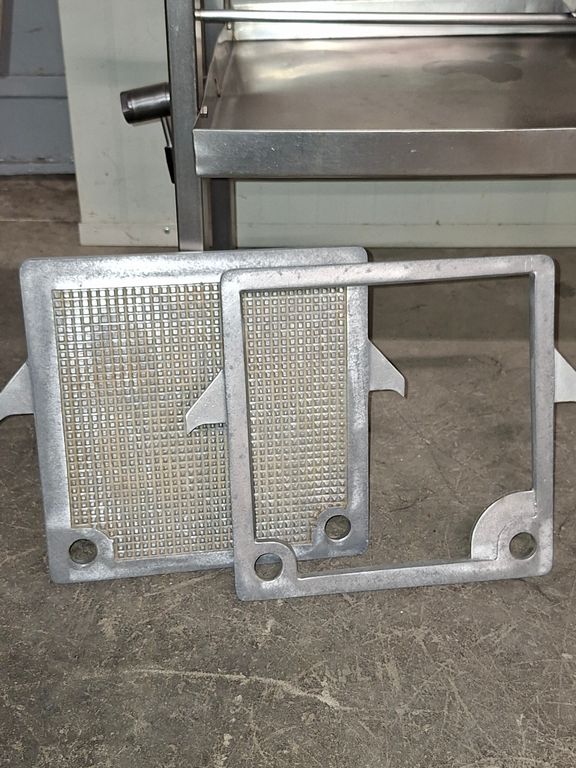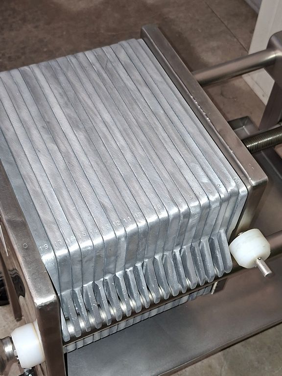 Filtro a piastre modello 32×32, telaio in inox, completo di 20 piastre a due fori in materiale alluminio anti corodal, composto da piastre piene e telai.