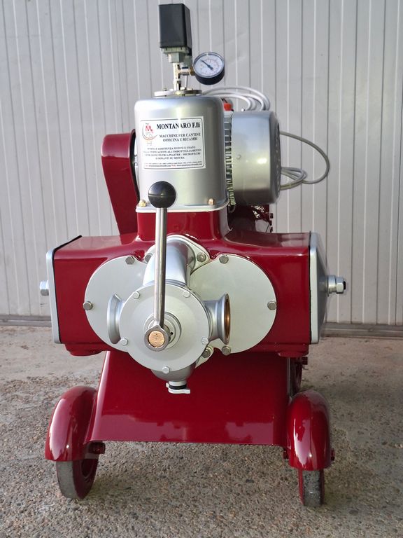 Pompa a pistone Manzini Mod.300HL bicilindrica, corpo pompa in bronzo, camicie interne in acciaio inox, invertitore di flusso rettificato con raccordi Garolla 70, pressostato di sicurezza con manometro per regolazione pressione di mandata.