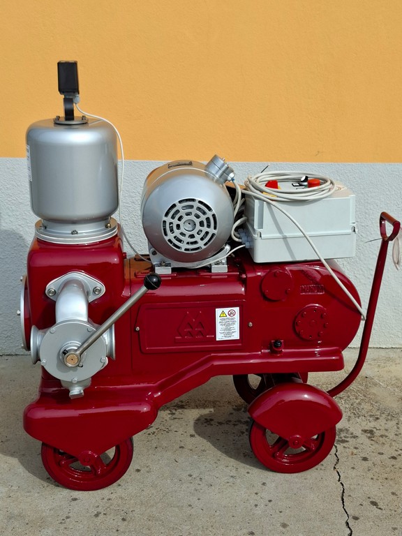 Pompa a pistone Manzini Mod.300HL, monocilindrica, corpo pompa in bronzo, camicia interna inox nuova, invertitore di flusso rettificato, camera d’aria con pressostato di sicurezza e manometro per controllo pressione di lavoro.