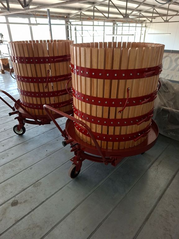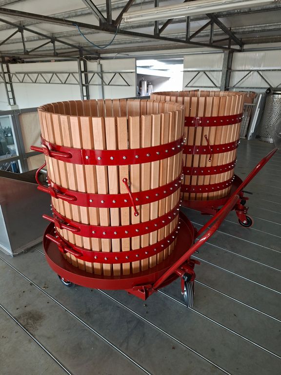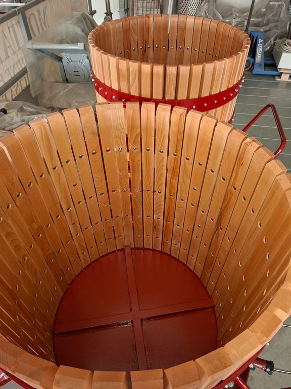 Pressa idraulica diametro 80, completa n. 02 carelli, baggioli in acciaio inox.