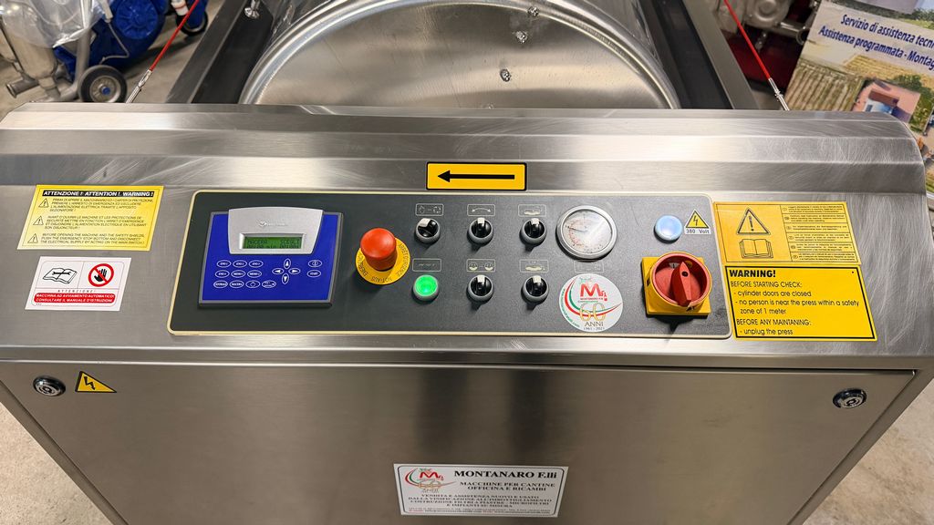 • funzionamento automatico tramite programmatore con display per cicli di pressatura preimpostati